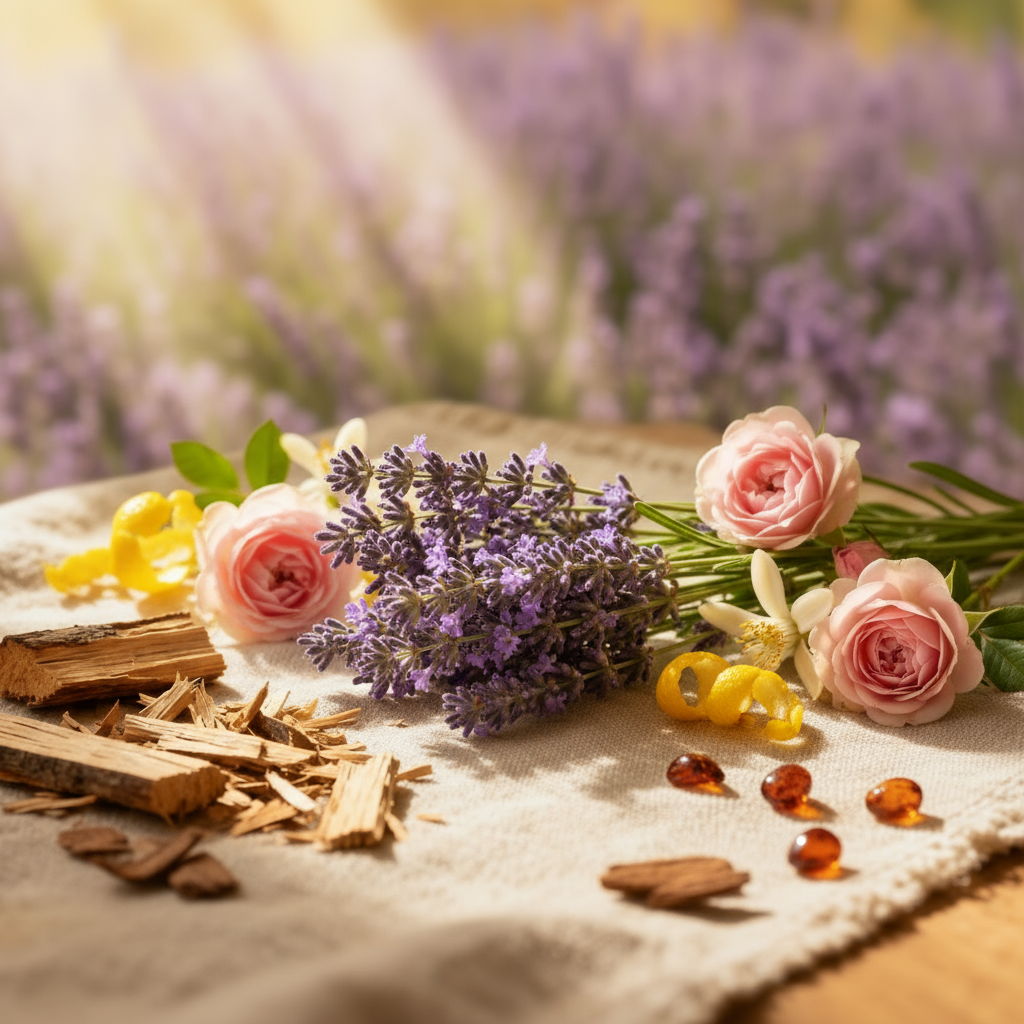 Come un tappeto di lavanda che ondeggia al vento sotto un cielo d’estate, si dipana una fragranza che porta serenità e respiro. La freschezza erbacea della lavanda in fiore apre questo viaggio sensoriale, un simbolo antico di purezza e quiete spirituale, che invita a momenti di pace e riflessione.